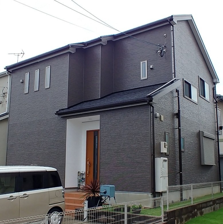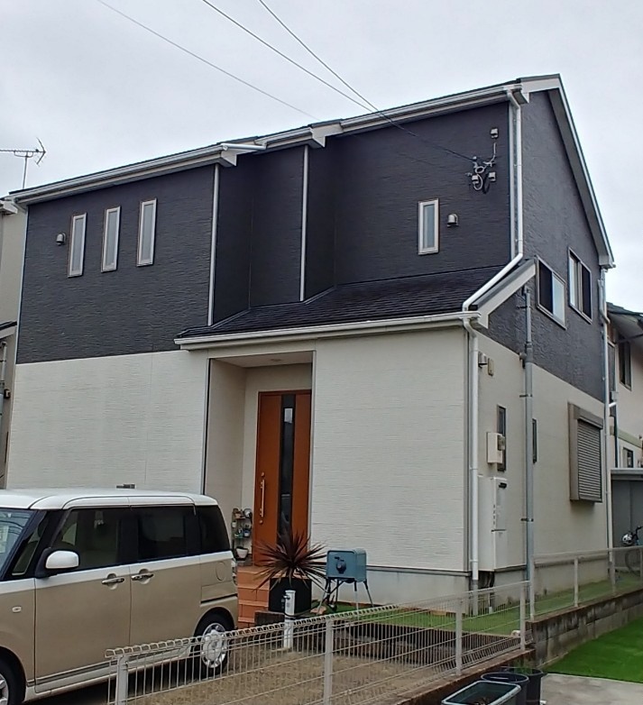 施工後使用塗料(メーカー)・サイディング外壁 プレミアム無機(エスケー化研)・スレート屋根 遮熱塗料(エスケー化研)雨樋、水切り マイルドシリコン(エスケー化研)