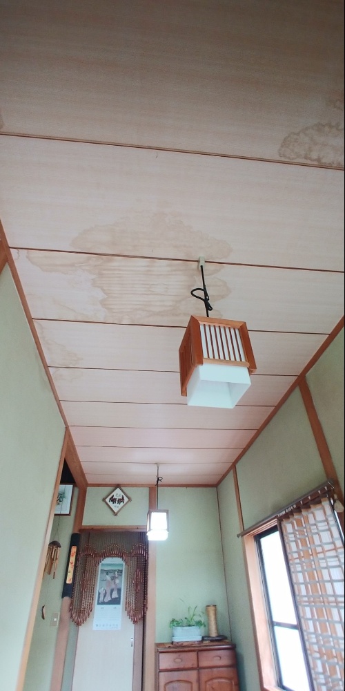施工後漏水箇所の瓦の下地ルーフィングを張り直し、室内は目透し天井からクロスに張替えました必ず受理されるものではないですが、天災により被害にあわれた場合は保険が利用できる可能性があります