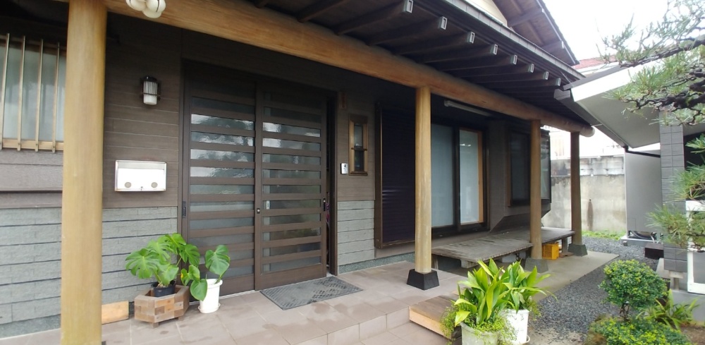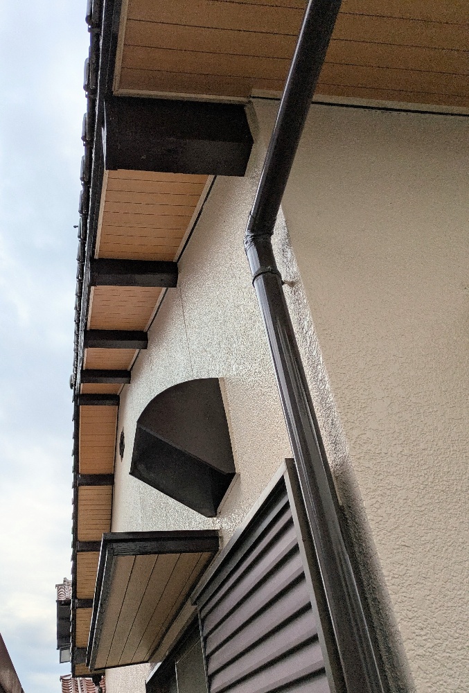 施工前前回、他社で塗装を施して8年程経過していました雨戸や雨樋の塗膜の剥がれや、モルタル外壁箇所にチョーキング症状が出ていて早く塗り直したいとの、ご希望あり弊社にて塗装ご依頼いただきました