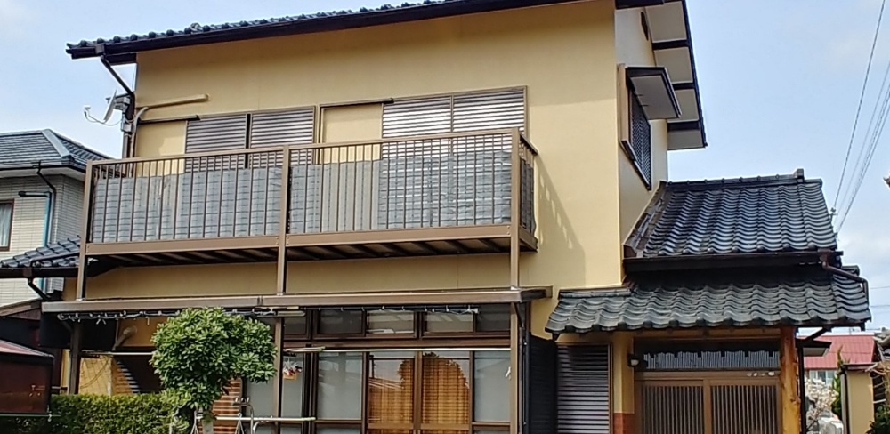 施工後使用塗料(メーカー)・モルタル外壁 プレミアムシリコン塗料(エスケー化研)・雨樋、雨戸 強溶剤系塗料(日本ペイント)