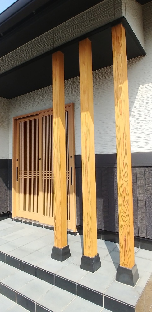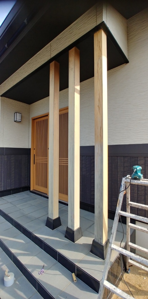 施工後柱がキレイになると、パッと見た目から随分明るく見えますね✨仕上げ剤は防虫防腐剤を使用しているため、木部も長持ちいたします