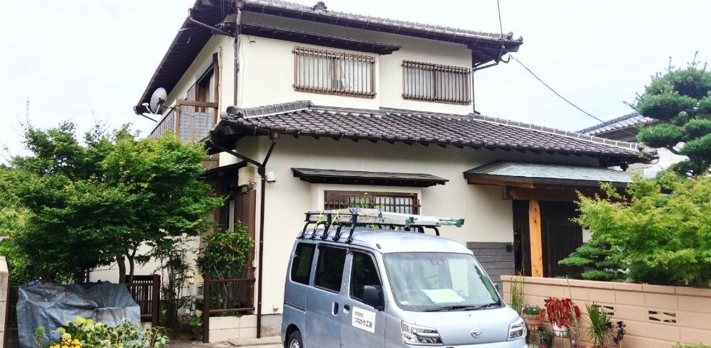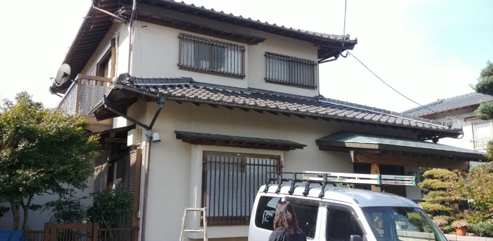 施工後使用塗料(メーカー)・モルタル外壁 プレミアムシリコン塗料(エスケー化研)・雨樋 マイルドシリコン塗料(エスケー化研)