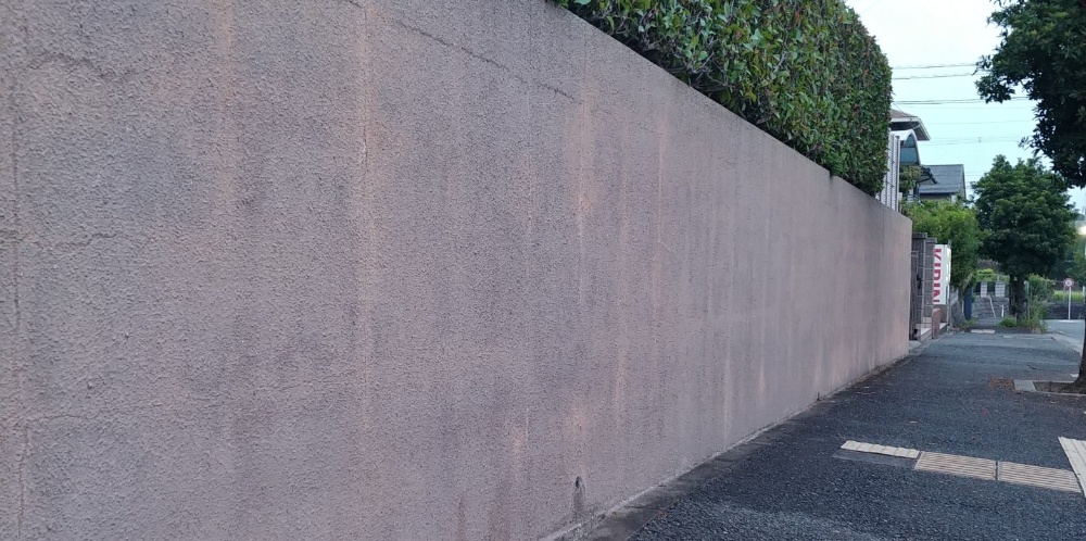 施工前経年劣化により汚れた塀ひび割れ(クラック)も複数発生していました