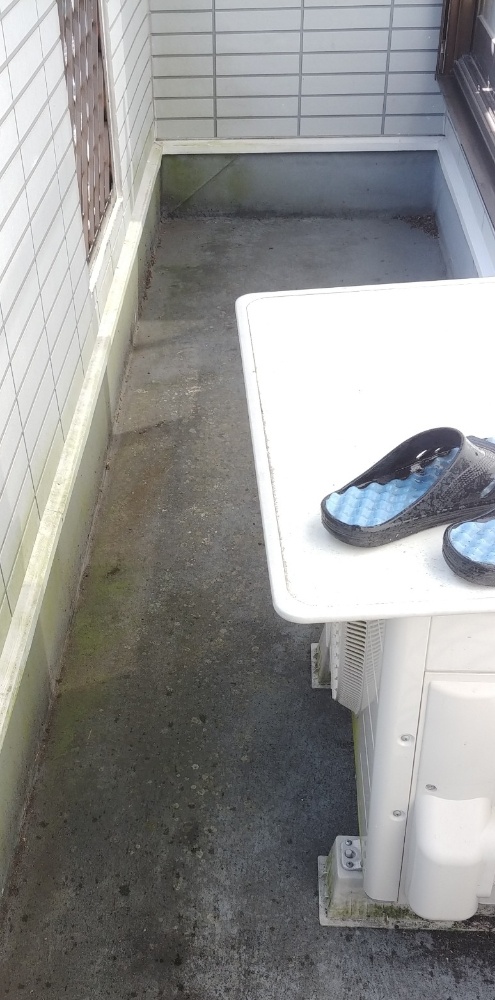 施工前ベランダの床が経年劣化により、汚れや旧塗膜の剥がれが発生していました