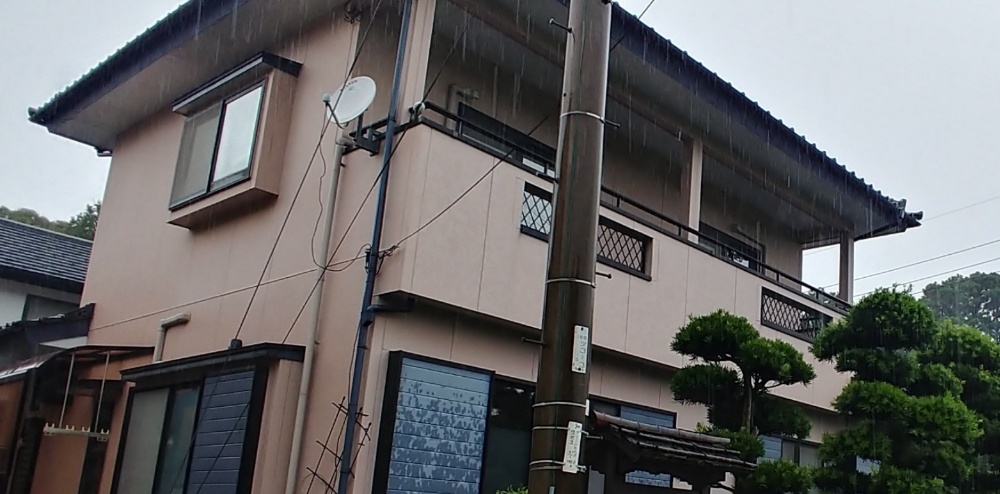 施工前外壁、スレート屋根に経年劣化による、クラックやカビ、旧塗膜の薄れが見受けられました他、樋の破損が数箇所ありました