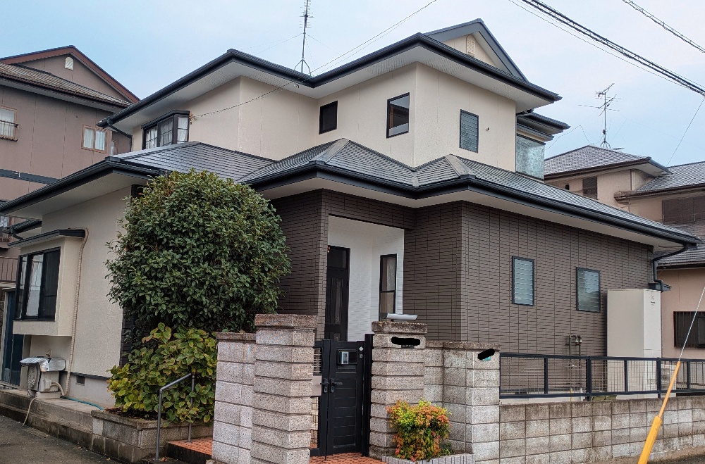 施工後使用塗料(メーカー)外壁 プレミアムシリコン(エスケー化研)屋根 水性ルーフセラ遮熱(日本特殊塗料)付帯箇所 マイルドシリコン(エスケー化研)