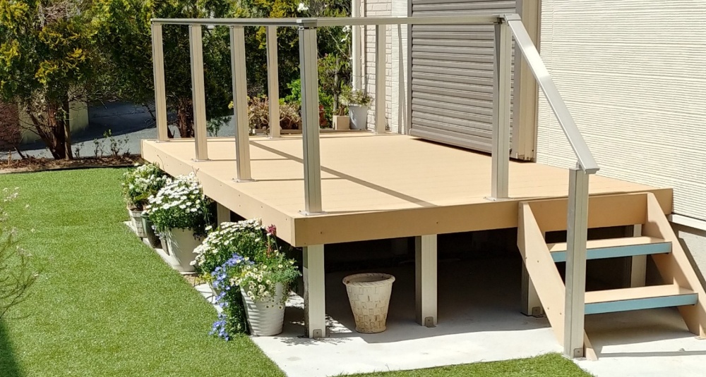 施工前お庭の雑草に困っているとのお話しをいただき、お客様とご相談の後、リウッドデッキと人工芝を敷くことになりました