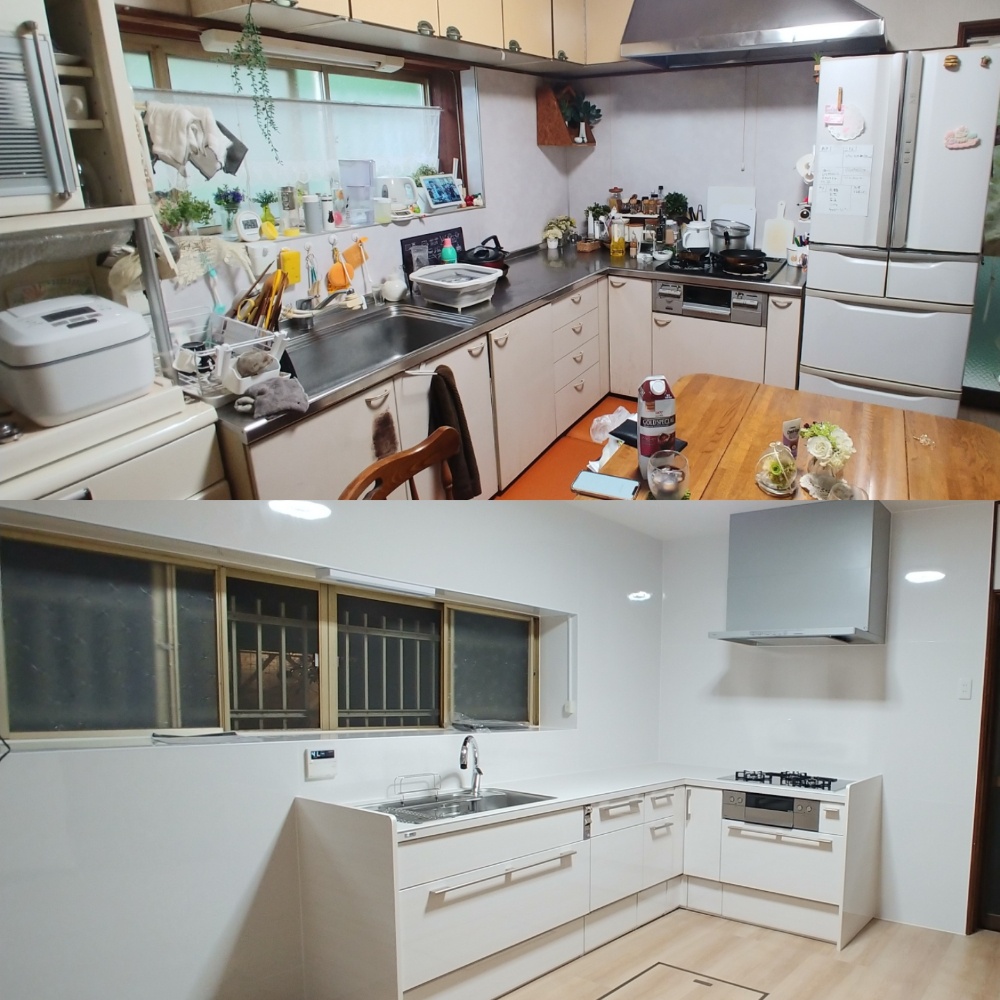 ビファーアフターの画像となります。いつも使用する台所が明るくなりました✨