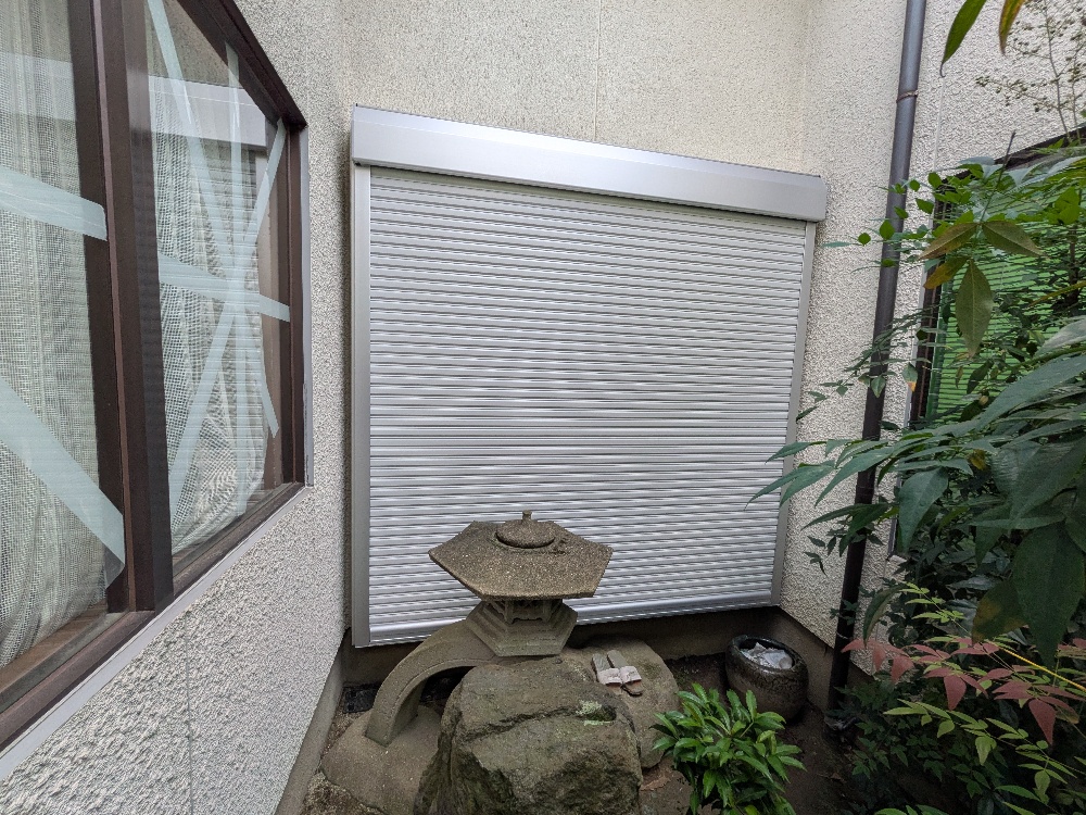 施工後手動式アルミのシャッターに交換✨手動式でも近年の商品は開閉が軽いですね😃